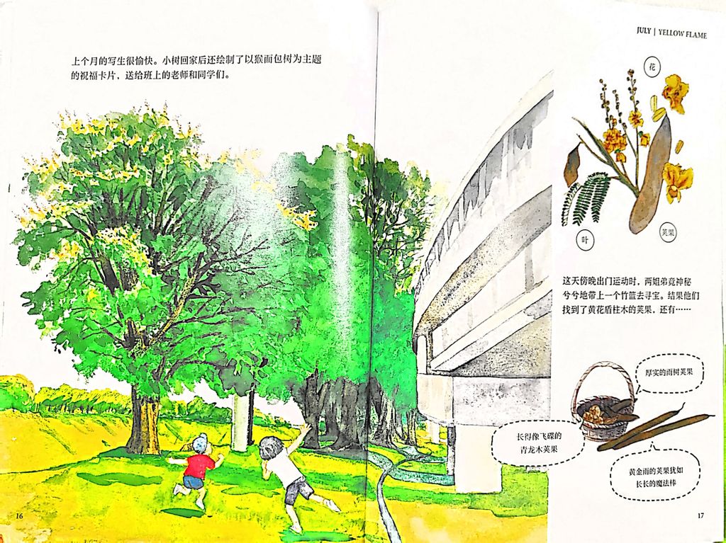 ★ 有了这样的铺陈和文图并茂引领,读者和书,就有了对话与连结。牵引了视觉的追踪,内在起来莫名的感触与回应。无形中,会试着了解书中描绘的行道树的名字、形态、叶子、花样、果实、坐落点和盛开的月份。相信作为读者的我们(尤其槟城读者),顿时会想,自己是否曾和这熟悉又陌生的行道树相遇过。有感蓦然回首,那树却在灯火阑珊处的意境。—— 喜家丽活动策划与协调人香子妈妈