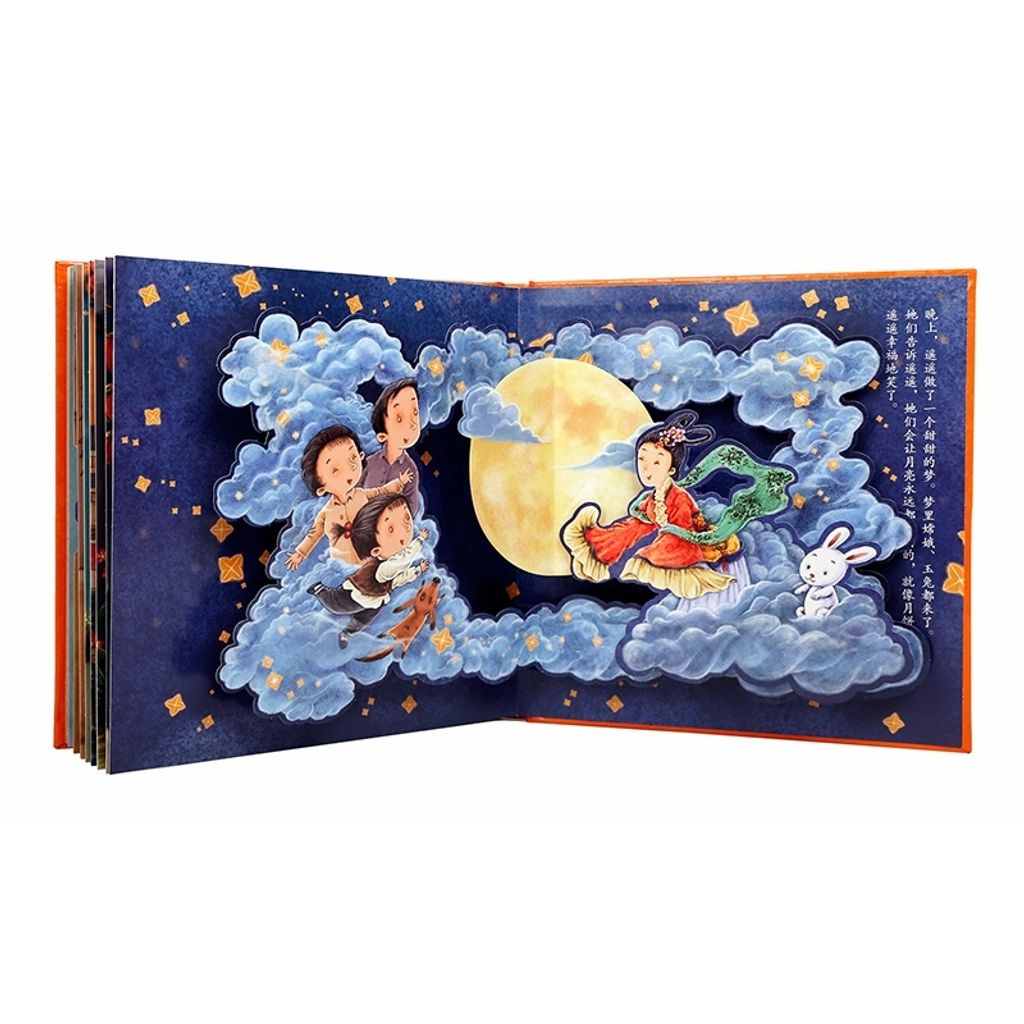 每一天,遥遥都眼巴巴地盼望着,月亮能早早一点变圆。因为,爷爷奶奶说,等月亮圆了,中秋节就到了,这一天,在外面的游子都要回家团圆,她就能见到爸爸妈妈了。遥遥跟奶奶一起做月饼,和爷爷一起做兔儿爷。在中秋节这天晚上,全家团圆,一起赏月、祭月。晚上,遥遥做了一个关于嫦娥的梦…… 本书将传统节日与绘本故事相结合,介绍了中秋节的起源、习俗、饮食等相关文化知识。运用翻翻、拉拉、立体等工艺,使孩子与图书互动起来。全书紧扣团圆主题,体现了中秋节的文化内核。