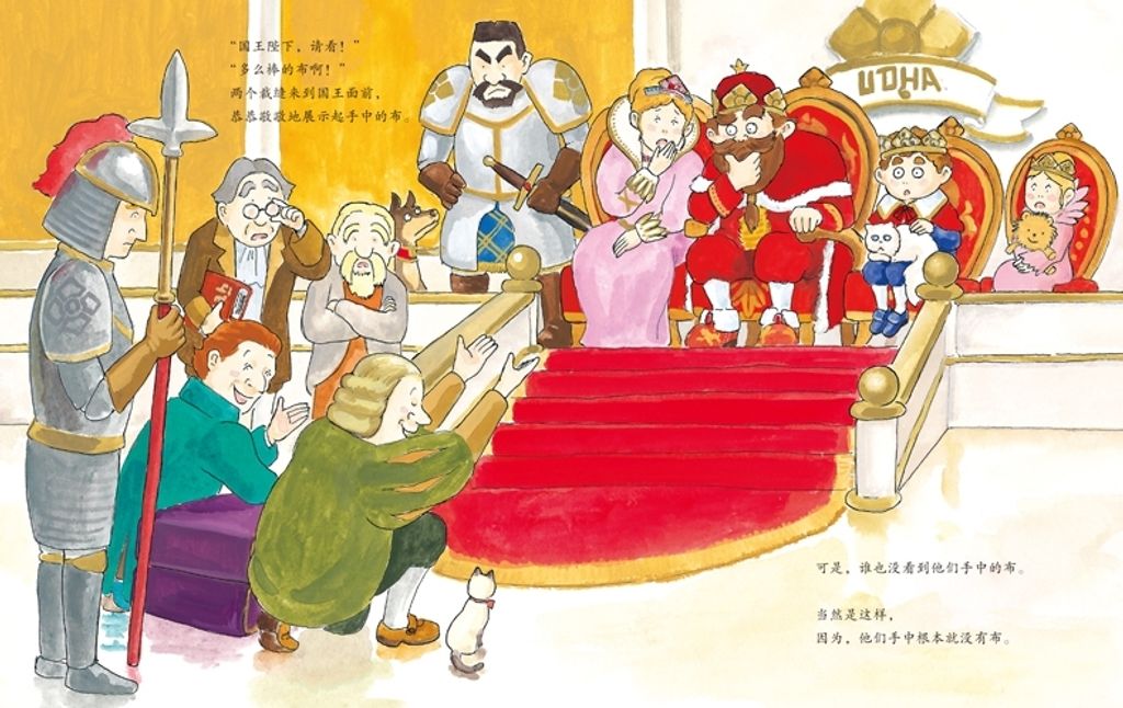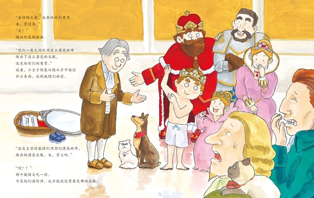 绘本故事是安徒生童话《皇帝的新装》的改编版续篇。正当两个裁缝骗子暗自庆幸奸计得逞,聪明睿智的小王子挺身而出,将计就计……*终让两个骗子聪明反被聪明误,不仅挽回了皇帝和众人的尊严,也让两个骗子原形毕露,当众出丑。*后,两个裁缝在善良豁达的小王子教育和感化下洗心革面,成了两名真正的好裁缝。