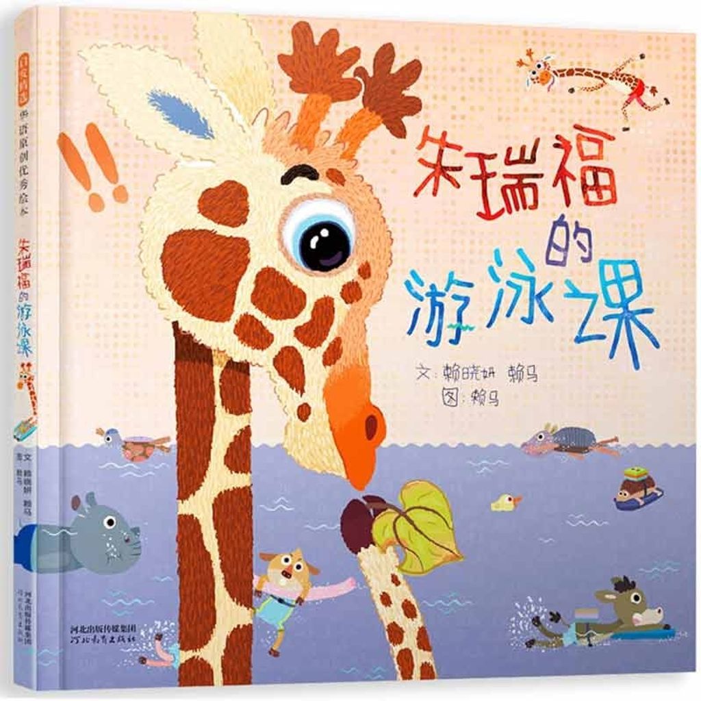 《朱瑞福的游泳课》是赖马与夫人赖晓妍首度合作的绘本作品。这本书延续了赖马作品一贯的风格,幽默且充满创意,把小长颈鹿朱瑞福学游泳这个看似平常的故事,讲得十分动听。 朱瑞福像我们的孩子一样,就是个普通的小孩,他一开始只是没能像他的同学一样顺利地学会游泳,可是这也没关系,朱瑞福没有活在自己编织的焦虑中,也没有活在别人的目光和评判里,他反复练习、思考,终于,当他看到一片叶子随风飘落时,一切就都不一样了,他发现了自己的优势,也领悟到了游泳的方法。 思考和学习是跳出自己狭隘视角、转向更广大世界的通道。