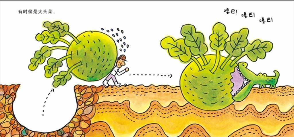 《爱吃青菜的鳄鱼》 农夫在河边捡到了一只小鳄鱼,他们成了一起出门工作的好伙伴!他们一起整理田地、播种,撒下各种各样的青菜种子,农夫每天都摘各种好吃的青菜给小鳄鱼吃。有一天,医生来帮大家检查身体,有的小朋友肚子里有咕噜咕噜的怪声、有的便便拉不出来,而爱吃青菜的小鳄鱼的肚子又干净又健康,因为它的肚子里有很多绿色小精灵帮忙把坏细菌赶光光!