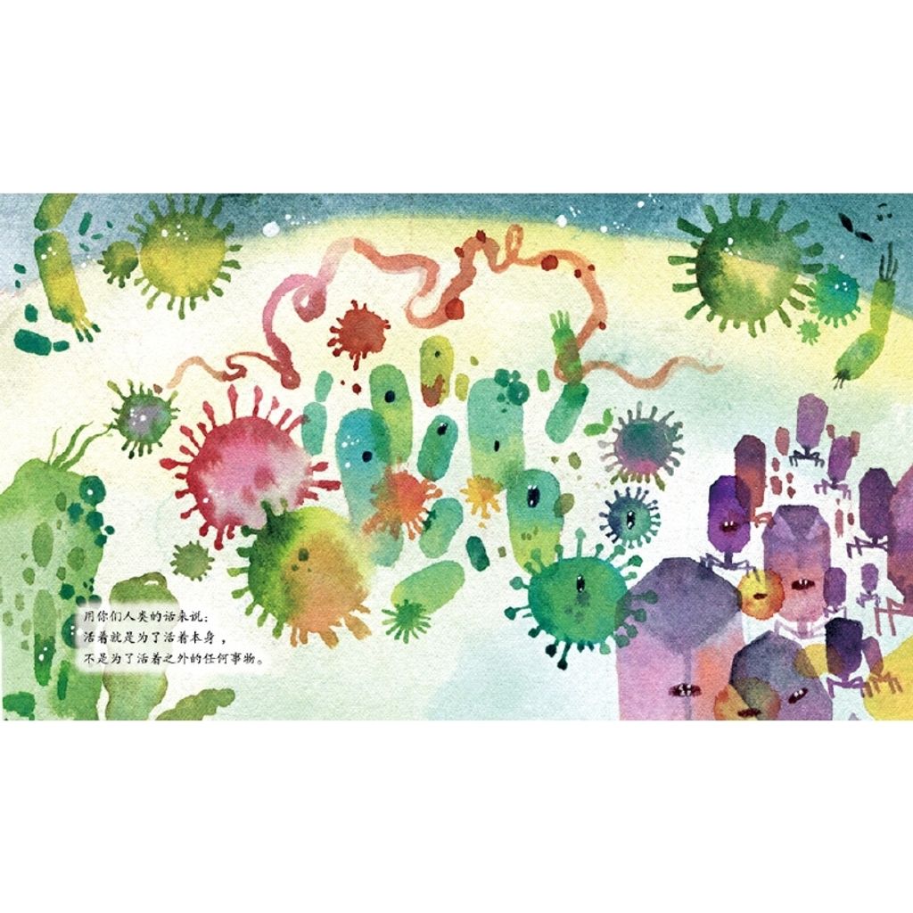 本书以病毒以第一人称的视角来叙事,俏皮的自说自话配合灵气的水彩画面,不仅展示了病毒的群像,也展示了地球上病毒的发展简史,以及病毒如何进入人体 ,人类的免疫系统如何和病毒抗争,病毒的弱点等内容。不科学的知识,还具有人文的审视。