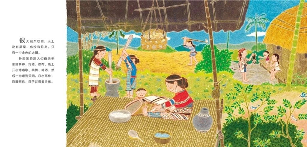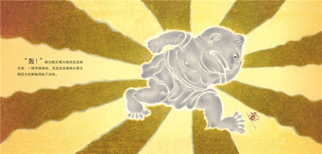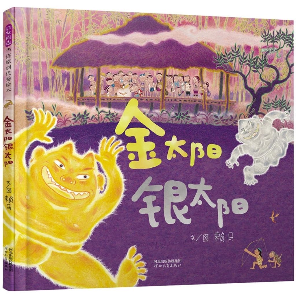 《金太阳银太阳》是我社出版的启发精选华语原创优秀绘本系列之一。很久很久以前,天上只有一个金太阳,人们日出而作、日落而息,日子过得很快乐。突然,跳出来了一个银太阳,金太阳和银太阳轮流在天上出现,没有夜晚、天气炎热,族人们不能休息,作物也没有收成,甚至小孩子也因为暴晒变成了一只只蜥蜴。为了拯救族人,智慧的勇士巴万带着年轻力壮的儿子瓦旦,还带着刚断奶的小孙子瓦历斯一起去射日……他们历尽艰辛走了很多年,瓦旦和瓦历斯找到了银太阳休息的间隙,与它展开了激烈的搏斗……结果会怎样?人们能重新拥有快乐、幸福的生活吗?