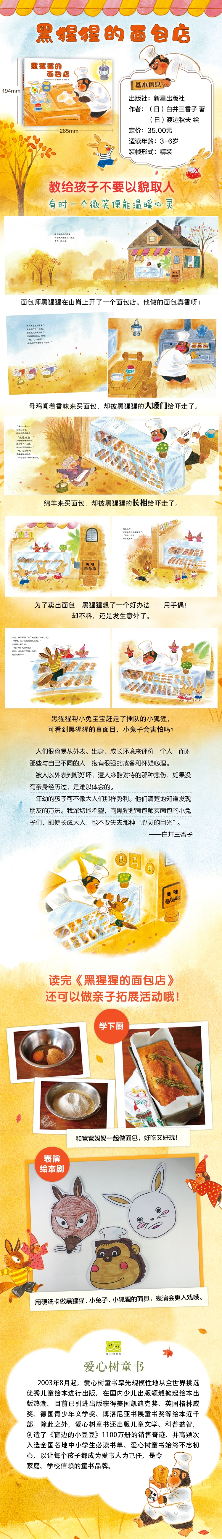 面包师黑猩猩在山岗上开了一个面包店,他做的面包香喷喷。母鸡们闻着香味来买面包,却被黑猩猩的大嗓门给吓走了。接下来,绵羊和狗獾来买面包,却被黑猩猩的长相给吓走了。黑猩猩一个面包都没卖出去,于是想到了用布偶来代替他出现在柜台前的主意。小小布偶吸引了小兔兔宝宝们来买面包,可这时爱逞威风的小狐狸出现了,这让黑猩猩的计划出现了意外……