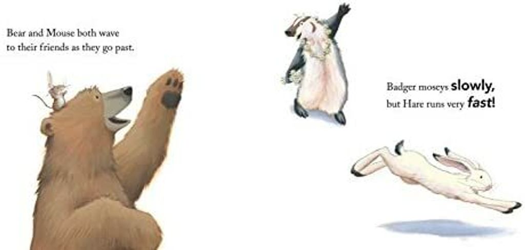 Bear is big, big, big, and mouse is small, small, small but these friends stick together through all the highs and lows!