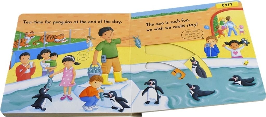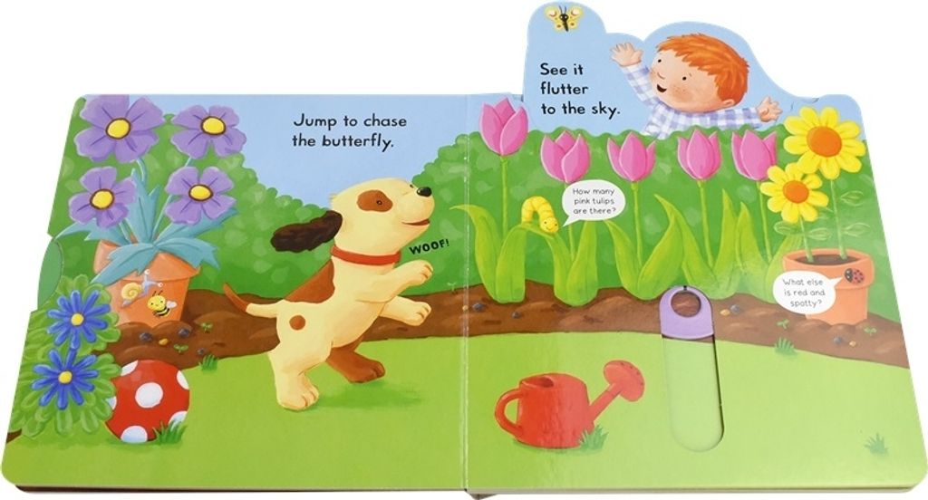 It's a busy morning in the house. Open up the blinds and see the sunny day outside, watch the washing going round in the washing machine, see things magically baking in the oven, and help a flower grow out in the garden. With four amazing easy-to-slide and turn mechanisms in each book, little ones will be kept busy for hours!