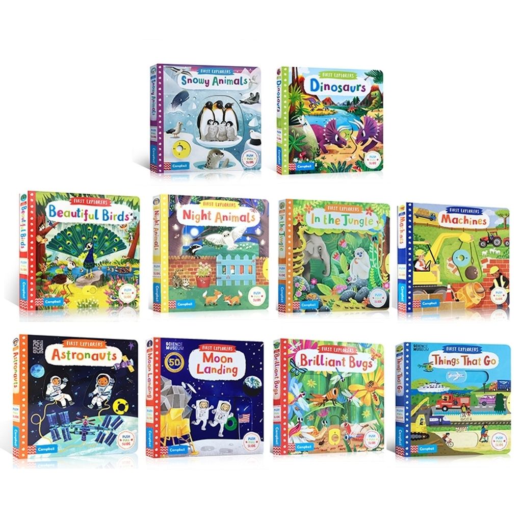 "First Explorers: Machines" Discover machines on the building site, at home and in the playground in First Explorers: Machines. Each scene has chunky push, pull and slide mechanisms perfect for little hands. Spot diggers, tractors and cranes, as well as lots of other machines at work, and read the fun facts.