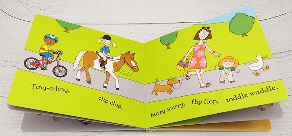 There's a hullabaloo at the seaside when a toddler takes his friends on a stroll to the end of the pier. There are buzzing bees, bicycle bells and a whole beachful of noisy fun. Even the smallest toddler will enjoy the wonderfully silly sounds in this book, so join in and waddle along - you've never been on a walk like it!