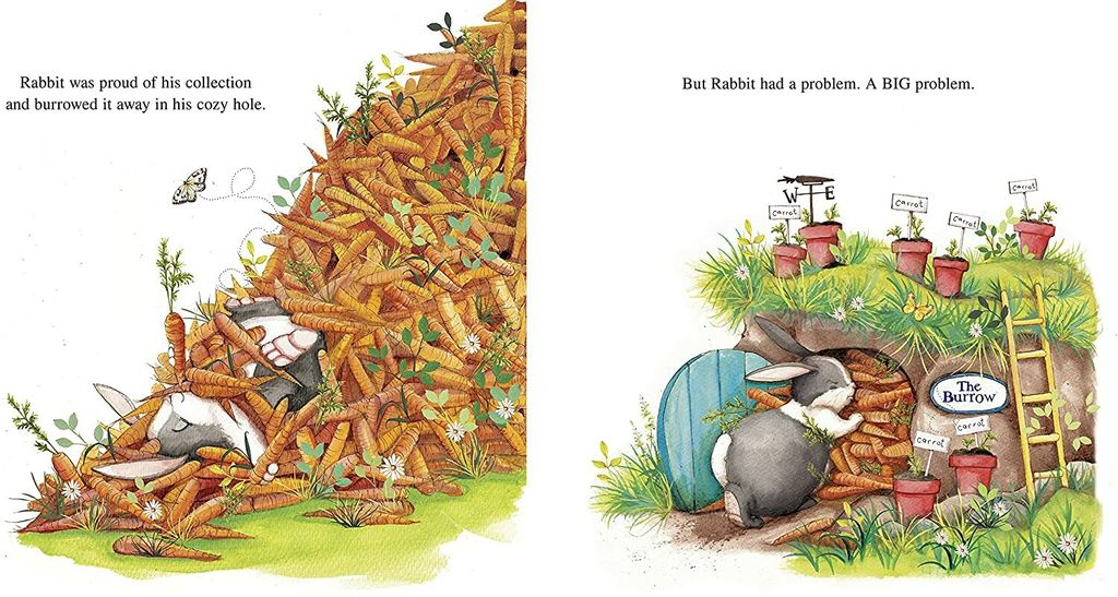 Rabbit loves carrots and that's a big problem! In this phenomenal bestseller, Rabbit loves carrots a little too much. In fact, his carrots are crowding him out of his cozy burrow. When his friends offer to help, they're just asking for trouble, a lot of trouble!