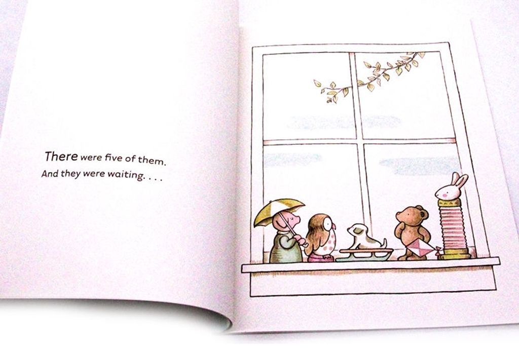 Five friends sit happily on a windowsill, waiting for something amazing to happen. The owl is waiting for the moon. The pig is waiting for the rain. The bear is waiting for the wind. The puppy is waiting for the snow. And the rabbit is just looking out the window because he likes to wait! What will happen? Will patience win in the end? Or someday will the friends stop waiting and do something unexpected?